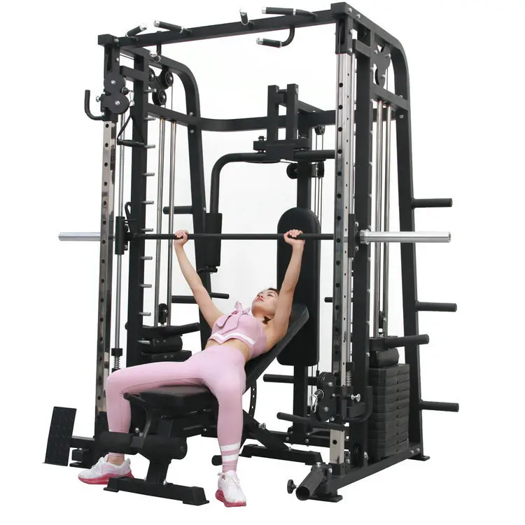 One of the main uses of the Smith machine is for weight training and strength training. It allows users to perform a variety of exercises, including squats, bench presses, shoulder presses, and lunges, while adding stability and safety. The machine's guided bar track provides a controlled range of motion, making it ideal for those new to weightlifting or recovering from injury.